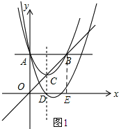 (2)将b=-1代入求得y2=x2-x+$\frac{1}{2}$,然后可求得点C的横坐标,从而得到点D的坐标为($\frac{1}{2}$,0),由点A和点D的坐标可求得y3=x2-$\frac{3}{2}x$+$\frac{1}{2}$,然后再求得y1=$\frac{1}{2}$x,然后可得到|y3-y1|=|x2-$\frac{3}{2}x$+$\frac{1}{2}$-$\frac{1}{2}x$|=|x2-2x+$\frac{1}{2}$|,然后根据x2-2x+$\frac{1}{2}$>0和x2-2x+$\frac{1}{2}$<0,化简绝对值,最后画出函数|y3-y1|=|x2-2x+$\frac{1}{2}$|的图象,根据函数图象可求得答案;