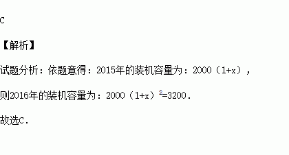 2014年底,我国核电装机容量大约为2000万千瓦,到2016年底我国核电装机容量将达到约3200万千瓦.若设平均每年的增长率为x,则可列方程为( )