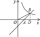 分析:设B(x,x-1),过点B作BD⊥x轴于点D,在Rt△OBD与Rt△ABD中利用勾股定理可得出OB、BD、AD之间的关系,再根据OB2-AB2=5即可求出x的值,故可得出B点坐标,再由点B在反比例函数y=的图象上即可求出k的值.