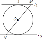 如图所示,直线l1∥l2,点M、N分别为l1、l2上的点,点O为MN的中点,以点O为圆心作⊙O与l1相切,切点为A.求证:⊙O与L2相切.