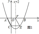 过点C作CE∥x轴,交抛物线于点E,过点E作EF∥AC,交x轴于点F,如图1所示,![]()