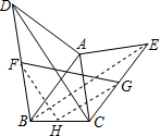 分析 取BC的中点H,连接BE、FH、GH,求出∠BAE=∠DAC,然后利用“边角边”证明△ABE和△ADC全等,根据全等三角形对应边相等可得BE=CD,全等三角形对应角相等可得∠ABE=∠ADC,然后求出BE⊥CD,再根据三角形的中位线平行于第三边并且等于第三边的一半可得FH∥CD且FH=$\frac{1}{2}$CD,GH∥BE且GH=$\frac{1}{2}$BE,然后求出△HFG是等腰直角三角形,根据等腰直角三角形的性质可得$\frac{FH}{FG}$=$\frac{\sqrt{2}}{2}$,然后求出$\frac{CD}{FG}$的值即可.