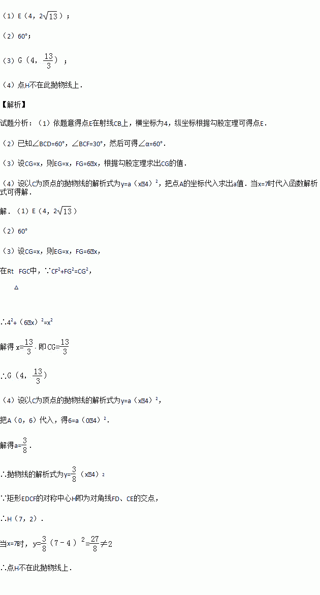 (4)如图③,当旋转角a=90°时,请判断矩形EDCF的对称中心H是否在以C为顶点,且经过点A的抛物线上.