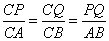 | 解:(1) ∵PQ//AB ∴△PQC∽△ABC ∵S△PQC=S四边形APBQ ∴ ∴CP=CA· (2)△PQC∽△ABC ∴ ∴CQ = 同理:PQ = ∴l△PCQ = CP + PQ + CQ = CP+ l四边形PABQ= PA+AB +BQ+PQ = 4 - CP + AB + 3 - CQ + PQ = 4 - CP +5 +3 - = 12 - ∴12 - ∴