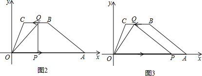 (3)根据题意得出:0≤t≤3,当0≤t≤2时,Q在BC边上运动,得出若△OPQ为直角三角形,只能是∠OPQ=90°或∠OQP=90°,当2<t≤3时,Q在OC边上运动,得出△OPQ不可能为直角三角形;