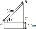 解答 解:能.设BC=x,∵∠BAC=45°,∴AC=BC=x,∴2x2=302,解得x=15$\sqrt{2}$.∴风筝的高度=(15$\sqrt{2}$+15)米.答:风筝的高度是(15$\sqrt{2}$+15)米.