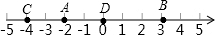 分析:(1)从数轴上可以看出A点是-2,B点是3,所以距离为5;