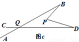 (3)在图 b 中,将直线 AB 绕点B逆时针方向旋转一定角度交直线 CD 于点 Q,如图 c,则∠BPD、∠B、∠D、∠BQD 之间满足的数量关系是 .
