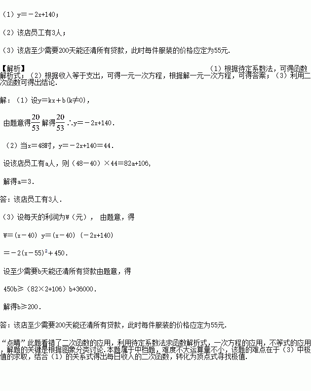 (3)若该店只有2名员工,则该店至少需要多少天能还清所有贷款?此时每件服装的价格应定为多少元?