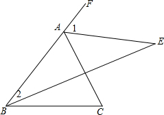 分析 (1)根据角平分线的性质得到∠1=$\frac{1}{2}$∠FAC,∠2=$\frac{1}{2}∠$ABC,根据外角的性质得到∠1=∠2+∠E,∠FAC=∠ABC+∠C,根据等量代换即可得到结论;