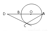 如图,AB为⊙O的直径,点D在AB的延长线上,DC切⊙O于点C,若∠A=250,则∠D等于( ).