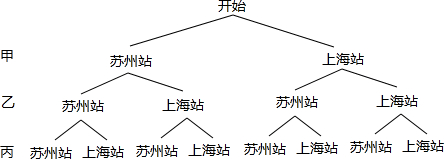 (2)∵甲、乙、丙三名旅客中至少有一人在苏州站下车的有7种情况;