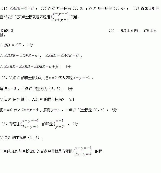 ,比较该方程组的解与两条直线的交点