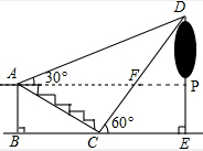 分析 作AP⊥DE于P,设树高DE为h米,在Rt△APD中,根据tan30°=$\frac{DP}{AP}$,在Rt△DCE中,tan60°=$\frac{DE}{CE}$,分别求出AP和CE,再根据tan30°=$\frac{AB}{BC}$,求出BC,最后根据BC=AP-CE,代入计算即可得出答案.