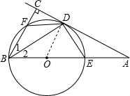 解答 解:(1)连接OD,