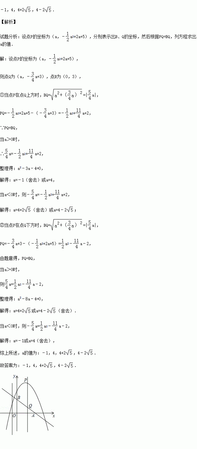 x+3于点Q,则当PQ=BQ时,a的值是 .
