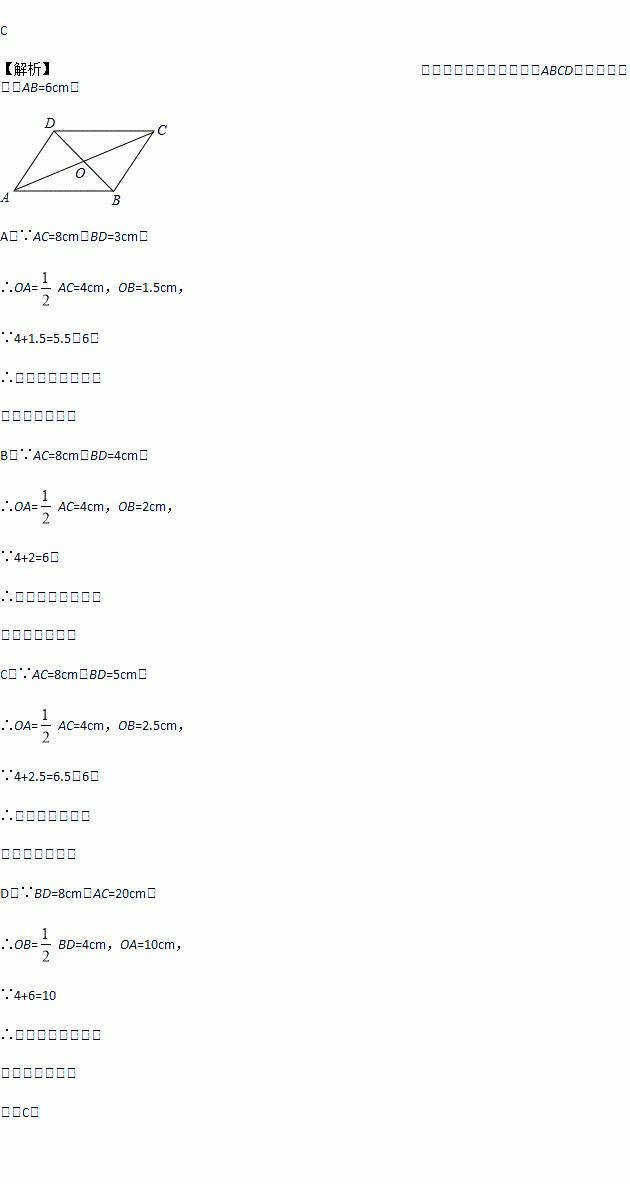 平行四边形的一条边长为6cm,那么这个平行四边形的两条对角线的长可以是( )