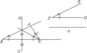 分析:(1)利用作一角等于已知角的作法得出,∠B=∠EFG,∠C=2∠B,即可得出符合题意的图形;