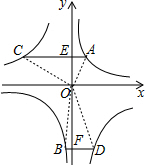 由反比例函数的性质可知S△AOE=S△BOF=$\frac{1}{2}$|k1|=$\frac{1}{2}$k1,S△COE=S△DOF=$\frac{1}{2}$|k2|=-$\frac{1}{2}$k2,