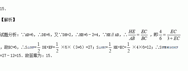 两个直角三角形重叠在一起,将其中一个三角形沿着点B到点C的方向平移到△DEF的位置,AB=6,DH=2,平移距离为3,则阴影部分的面积是 .