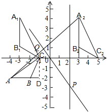 (2)由(1)可知,B1的坐标为(-3,1),A1B1C向右平移6个单位得△B2C2,B1的横坐标向右平移6个单位,即B2的横坐标为-3+6=3,即点B2的坐标为(3,1).B2(3,1);