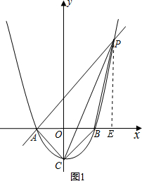 如图1,过点P作PE⊥x轴于E,则△APE为等腰直角三角形![]()