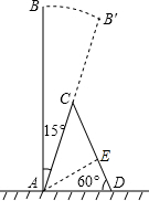 分析 过点A作AE⊥CD于点E,由∠BAC=15°可求出∠DAC的度数,在Rt△AED中由∠ADE=60°,AD=4可求出DE及AE的长度,在Rt△AEC中由直角三角形的性质可得出AE=CE,故可得出CE的长度,再利用锐角三角函数的定义可得出AC的长,进而可得出结论.