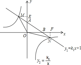 解答 解:(1)当x=0时,y1=1,则A(0,1),OA=1.