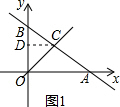 分析 (1)如图1,过C作CD⊥OB于D,分别令x,y为0,即可解得B、A两点坐标,根据三角形相似得到方程,再解方程,即可解得C点的坐标;