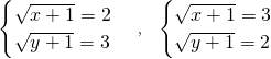 分析:首先设关于的t的一元二次方程t2-5t+6=0的两个根,解得一元二次方程的解,然后解无理方程组,解得x、y的值.