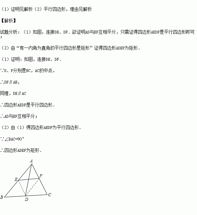 (2)若∠BAC=90°,试说明四边形AEDF的形状,并简要说明理由.