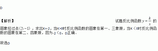 的图象经过点(2,-1),则该反比例函数的图象在( )
