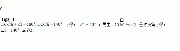 如图所示,直线AB和CD相交于点O,若∠COB=140°,则∠1、∠2的度数分别为( )