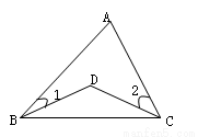 如图,已知∠1=20°,∠2=25°,∠A=55°,求∠BDC的度数.