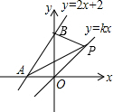 分析 先根据坐标轴上点的坐标特征求出A点和B点坐标,设P(t,kt),再根据三角形面积公式得到$\frac{1}{2}$•|t|•2=2•$\frac{1}{2}$•1•|kt|,然后解绝对值方程求出满足条件的k的值即可.
