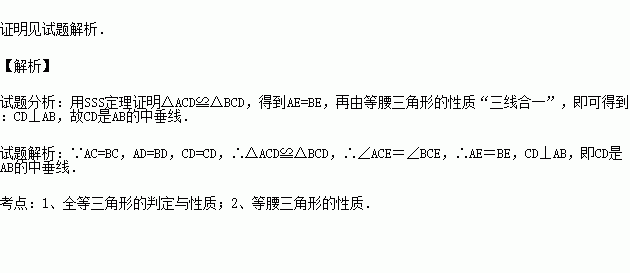 尺规作图画线段AB的中垂线CD(E为垂足)时,为了方便起见,通常把四段弧的半径取成相等;其实不必如此,如图,若能确保弧①、②的半径相等(即AC=BC),再确保弧③、④的半径相等(即AD=BD),直线CD同样是线段AB的中垂线.请你给出证明.
