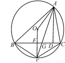如图,△ABC是定圆O的内接三角形,AD为△ABC的高线,AE平分∠BAC交⊙O于E,交BC于G,连OE交BC于F,连OA,在下列结论中, ①CE=2EF,②△ABG∽△AEC,③∠BAO=∠DAC,④
