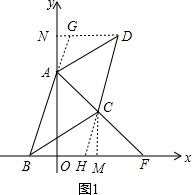 过D作DN⊥y轴,过C作CM⊥x轴,垂足分别为N、M,延长BA交DN于G,延长DC交BM于H,如图1,