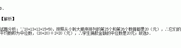 (3分)学校团委组织“阳光助残”捐款活动,九年一班学生捐款情况如下表: