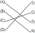 以同一流量的水管分别注水到这四个容器,所需时间都相同,如下图所示,下列图象显示注水时容器水位h与t的关系.请把适当的图象序号与相应的容器形状的字母代号用线段相连接.