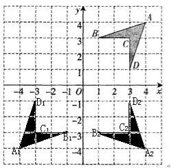 (2)画出“基本图形”关于x轴的对称图形A2B2C2D2,并写出B2点的坐标,B2( , ).