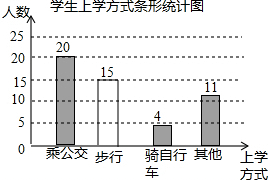 £¨2£©Ëæ»ú³éȡһλѧÉú£¬Ôò¸ÃѧÉúÊÇÆï×ÔÐгµÉÏѧµÄ¸ÅÂÊÊÇ$\frac{4}{50}$=$\frac{2}{25}$£»