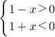 在平面直角坐标系中,若点P(1-x,1+x)在第四象限,则x的取值范围是________.