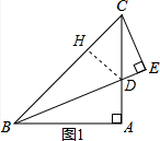 分析 (1过点D作DH⊥BC于H,根据已知条件,∠BAC=90°,AB=AC,BD是∠ABC的平分线,得到DH=AD,在等腰直角三角形CDH中,求得CD;