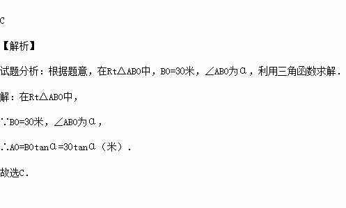 (2015•长沙)如图,为测量一棵与地面垂直的树OA的高度,在距离树的底端30米的B处,测得树顶A的仰角∠ABO为α,则树OA的高度为( )