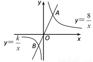 (x﹤0)图象上一点,直线AB过原点O,且OA=2OB,则k的值为( )