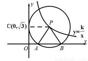 的图象(第一象限)上,并且与x轴交于A、B两点,与y轴相切于点C(0,