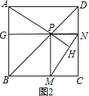 分析 (1)连接PC,根据正方形的性质可得∠BCD=90°,∠ABD=∠CBD=45°,AB=BC,然后求出四边形PMCN是矩形,根据矩形的对角线相等可得PC=MN,再利用“边角边”证明△ABP和△CBP全等,根据全等三角形对应边相等可得AP=PC,从而得解;