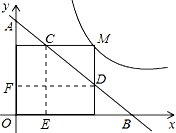 分析 作CE⊥x轴于E,DF⊥y轴于F,如图,对于直线y=-x+m,分别令x与y为0求出对应y与x的值,表示出A与B坐标,进而得到三角形AOB为等腰直角三角形,确定出三角形ADF与三角形CEB为等腰直角三角形,设M(a,b),代入反比例解析式求出ab的值,表示出CE与DF长,进而表示出AD与BC的长,即可求出AD•BC的值.