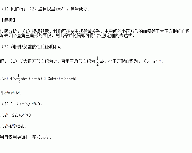 (2)说明a2+b2≥2ab及其等号成立的条件.